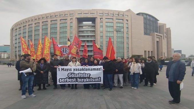 Çağlayan Adliyesi önünde bir araya gelen devrimci demokrat kurumlar, sendikalar ve aileler, 1 Mayıs eylemlerine katıldıkları gerekçesiyle gözaltına alınanların serbest bırakılmasını istedi: “Direniş meşrudur, 1 Mayıs yasaklanamaz!”