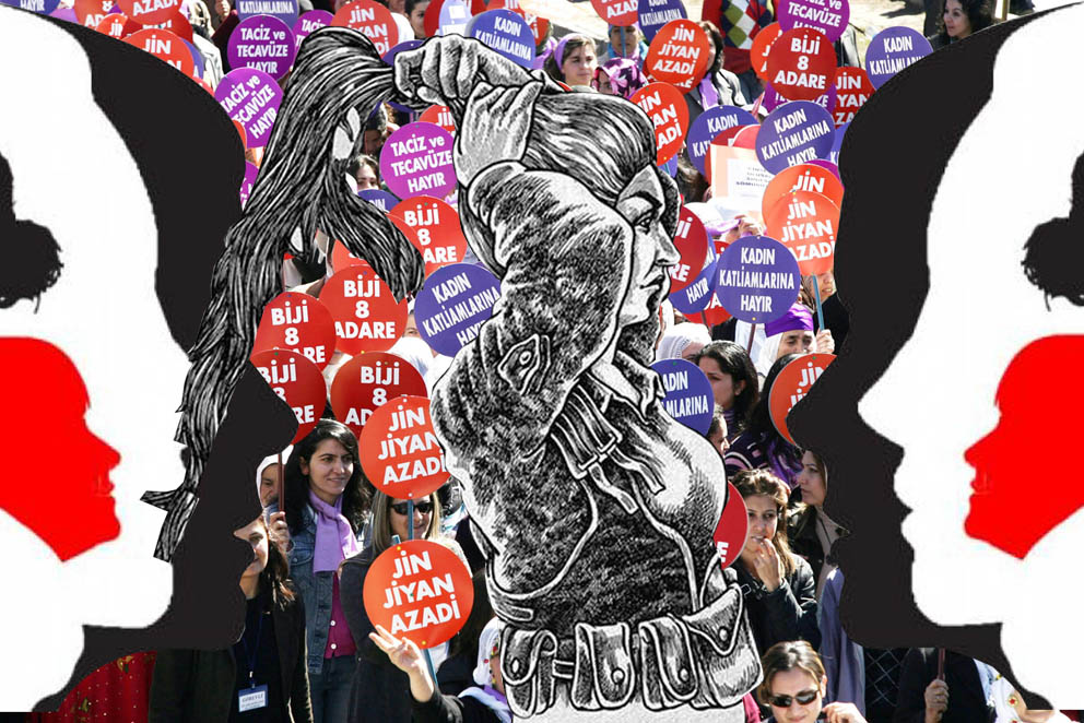 Ama bunların hepsi iktidarlar cephesinde yaşanan gelişmelerdir. Madalyonun diğer yüzünde ise baskının, şiddetin, zulmün olduğu her yerde olduğu gibi direniş ve mücadele var. Ülkede OHAL’in saldırı ve tutuklama terörüne karşı alanları “herHALde direniyoruz” diyerek terk etmeyen kadınlar var. Sokaklar kadınlar ve LGBTİ+’lar için her geçen gün daha güvensiz hale gelirken, evlerine kapanmayan kadın ve LGBTİ+’lar var… Kanun Hükmünde Kararnamelerle işten atılan on binlerce kişinin sesi olan ve ölümüne direnen Nuriyeler var… Türkiye Kürdistanı’nda özyönetim direnişi sürecinde olduğu gibi yaşamını, toprağını savunan, özsavunma hakkını halkını savunmaya yükselten militan kadınlar var… Rojava’da Kobanê, Reqa ve en nihayetinde Efrîn’de DAİŞ, ÖSO vb. çetelerin ve Türk devletinin işgal saldırılarına karşı bedenini kalkan yapan Arinler, Avestalar var… Evinin bahçesine girerek gaz bombası atıp, evin pencere ve camlarını kıran İsrail askerine tokat ve yumrukla saldıran Ahed Tamimiler var… Kürtaj yasağına, kadın katliamlarına, ücret eşitsizliğine karşı kadın grevleriyle yaşamı durduran Latin Amerika ve Avrupalı kadınlar var…