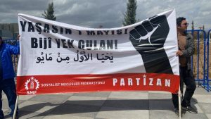 Gençliğin 19 Marttan sonra yükselttiği mücadele dinamizmi Ankara’da son yılların en yüksek katılımı sağlanarak 1 mayıs alanında karşılığını buldu. Bu sene Partizan ve SMF’nin birlikte oluşturduğu kortej alanda kendi rengiyle yerini aldı. Partizan ve SMF, AKM önünde toplanarak yürüyüşe geçti. Partizan ve SMF, üzerinde “Yaşasın 1 Mayıs! Bîjî Yek Gulan!” yazılı ortak pankart taşıdı.