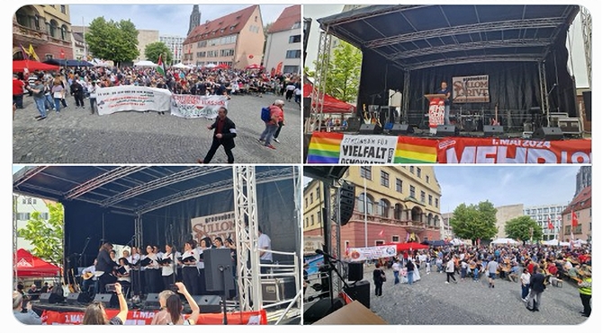 Alman Sendikalar Birliği (DGB) tarafından tüm Almanya’da “Daha fazla ücret daha fazla boş zaman ve daha fazla güvenlik” sloganıyla gerçekleştirilen dünya işçi sınıfı uluslararası birlik, dayanışma ve mücadele günü olan 1 Mayıs coşkuyla kutlandı.
