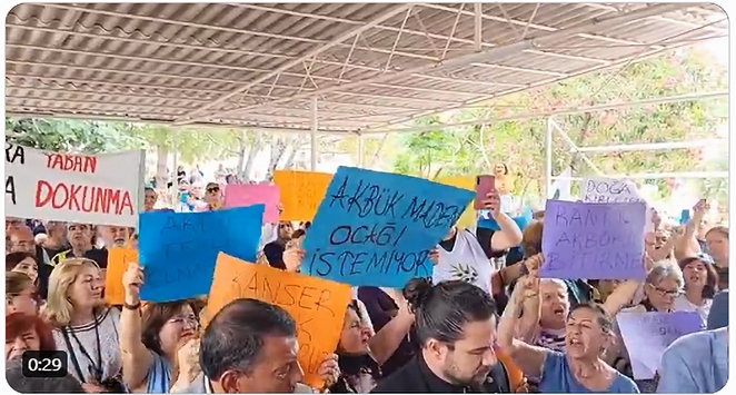 GZ Madenciliğin Aydın Didim’e bağlı Akbük Mahallesi’nde yapmak istediği mermer ocağı kırma-eleme tesisi için 9 Mayıs Perşembe günü gerçekleştirilen ÇED toplantısı halk tarafından protesto edildi.