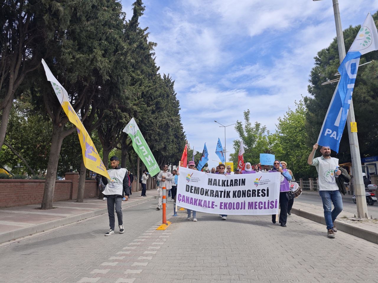 Çanakkale’de de 1 Mayıs kutlaması, eski Salı Pazarı mevkisinde 12:30’da toplanan kortejin yürüyüşüyle başladı. Kitle, sloganlarla Cumhuriyet Meydanı’na kadar yürüdü. Türküler söyleyip halay çekti. Burada düzenlenen mitingde sendika ve demokratik kitle örgütleri adına konuşmalar yapıldı.