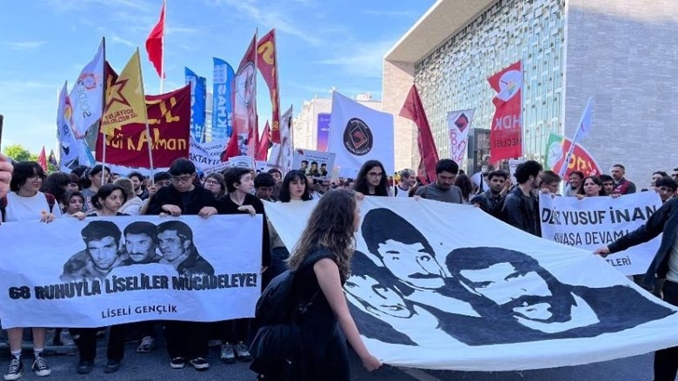 6 Mayıs 1972’de idam edilen devrimci önderler Deniz Gezmiş, Hüseyin İnan ve Yusuf Aslan, ölüm yıl dönümlerinde İstanbul’da gençliğin kitlesel yürüyüşüyle anıldı. Atatürk Kültür Merkezi (AKM) önünde toplanan yüzlerce genç, kortejler halinde Dolmabahçe’ye yürüdü.