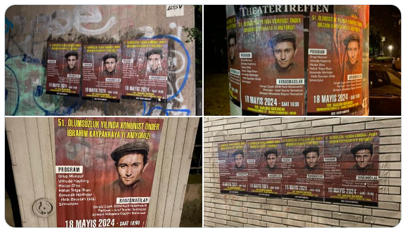 Duisburg Partizan tarafından Komünist Önder İbrahim Kaypakkaya’nın 52. ölümsüzlük yıldönümünde Almanya’nın Frankfurt şehrinde Partizan ve Sınıf Teorisi tarafından gerçekleştirilecek olan etkinliğin afiş ve stickerları, 1 Mayıs yürüyüşünün yapılacağı güzergaha yoğun bir şekilde asıldı.