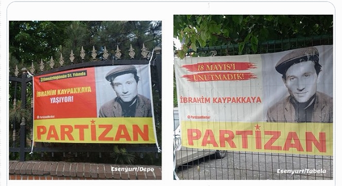 Partizan, İbrahim Kaypakkaya’yı anmak için Esenyurt’un farklı bölgelerinde “18 Mayıs’I Unutmadık İbrahim Kaypakkaya, Partizan” ve “Ölümsüzlüğünün 51. Yılında İbrahim Kaypakkaya Yaşıyor, Partizan” imzalı pankartlar astığını duyurdu.