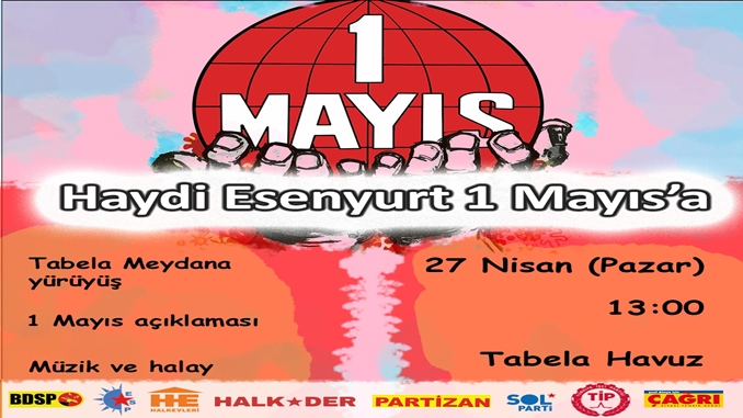 1 Mayıs çalışmaları tüm hızıyla sürüyor. İstanbul Esenyurt’ta 1 Mayıs için çağrı yapıldı. Aralarında Partizan’ın da bulunduğu devrimci demokratik kurumlar, Esenyurt’ta yürüyüş gerçekleştireceklerini duyurdu.