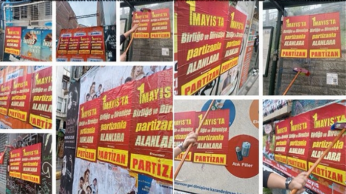 Partizan İstanbul Kadıköy’de yaygın olarak yaptığı afişleme çalışmasıyla işçi ve emekçileri 1 Mayıs alanlarına çağırdı.