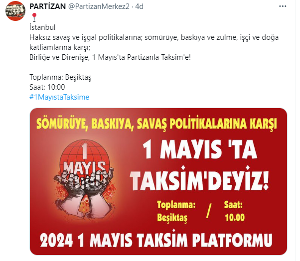 İstanbul Partizan ayrıca 1 Mayıs çalışmalarına dair paylaşımda bulundu.