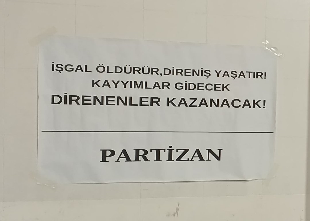 Partizan; İzmir’de “İşgal Öldürür, Direniş Yaşatır! Kayyımlar Gidecek Direnenler Kazanacak! Partizan” imzalı ozalitleri İzmir’in işlek cadde ve sokaklarına asıldı.