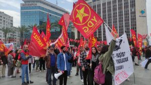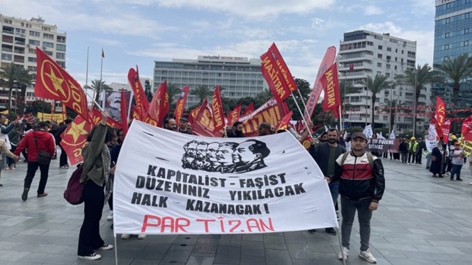 Saat 11.00’de Cumhuriyet Meydanı’nda toplanan Partizan ve Yeni Demokrat Gençlik (YDG), “Kapitalist-faşist düzeniniz yıkılacak! Halk kazanacak!” yazılı pankartla miting alanına yürüyüş gerçekleştirdi.