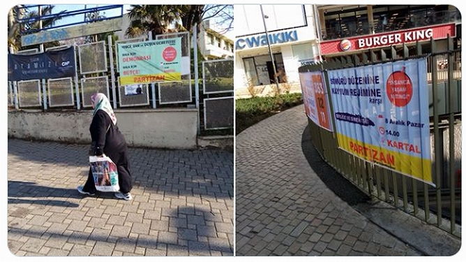 Partizan X Hesabı’ndan yaptığı paylaşımda; “Kayyum rejimine, savaş ve sömürü bütçesine; kayyum rejimine dur demek için 8 Aralık’ta Kartal’dayız” ifadelerini kullanarak, “ Yağma Ve Kayyum Düzenine Karşı Birliğe ve Direnişe” ve “Vergi, Zam ve Düşük Ücretlere Karşı Halk İçin Bütçe Halk İçin Demokrasi” pankartları astığını duyurdu.