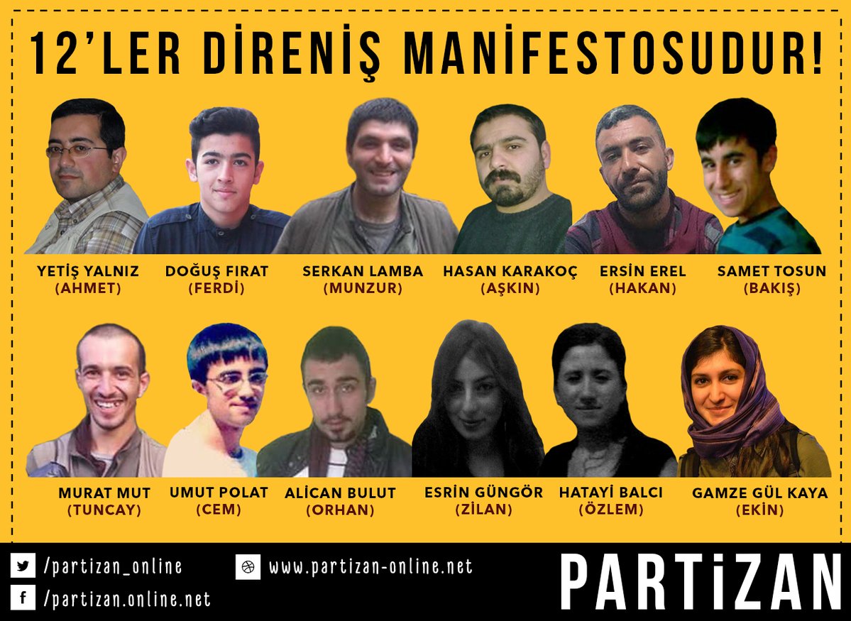Şimdi bizlere düşen genç bedenlerini bu savaşta siper edenlerin manifestosunu sürdürmek ve onların bayraklarını daha yukarı, en yukarı taşımaktır. 12 acının hesabını düşmandan sormak, 12 yarayı mücadeleyle sarmak, 12 fidanı devrim toprağında filizlendirmektir. Kuşkusuzdur ki bu görev de yerine getirilecektir!