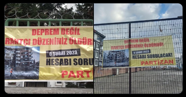 Partizan X Hesabı’ndan yaptığı paylaşımda; “AKP-MKP iktidarı imkanlarını sefer etmeyerek halkın göz göre göre ölmesine neden oldu 6 Şubat’ta yaşanan asrın felaketi değil asrın katliamıdır! Öldüren deprem değil sömürü ve yağma rejimidir 6 Şubat 2023; Deprem Değil Rantçı Düzeniniz Öldürdü Hesabı Sorulacak” ifadelerini kullandı.