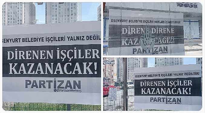 Partizan Esenyurt’ta işten atılan işçilerin direnişle dayanışma ziyaretinde bulundu ve ayrıca birçok yerde pankart astığını duyurdu.