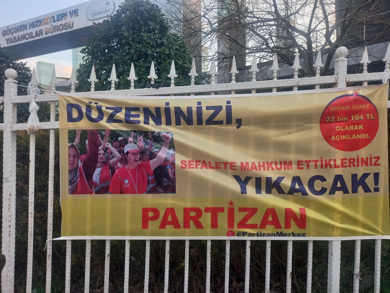 Partizan X Hesabı’nda yaptığı paylaşımda; İstanbul Maltepe’de “Düzeninizi sefalete mahkum ettikleriniz yıkacak” yazılı pankart astığını duyurdu.