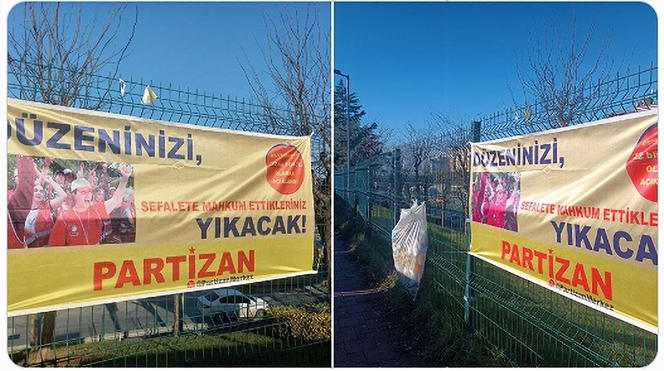 Partizan’da İstanbul’da, “Düzeninizi sefalete mahkum ettikleriniz yıkacak” yazılı pankart asarak işçi ve emekçilere dayatılan sefalet ücretini protesto etti.