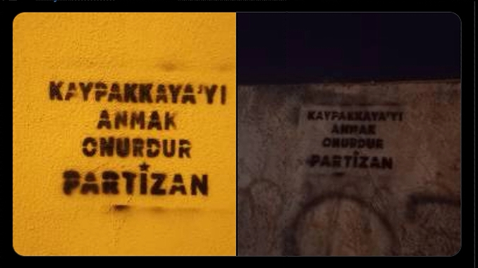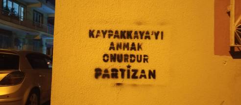Partizan; İzmir’de Bayraklı Yamanlar Mahallesi’nde “Kaypakkaya’yı Anmak Onurdur Partizan” imzalı stencil çalışması yaptığını duyurdu.
