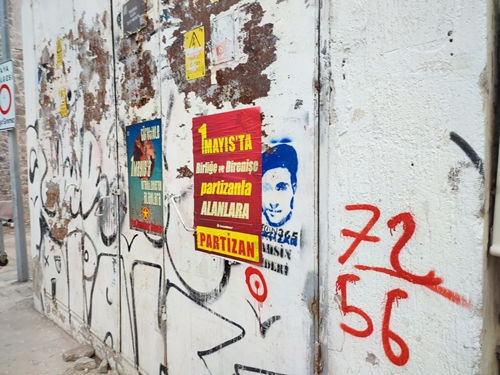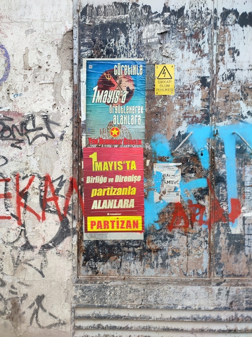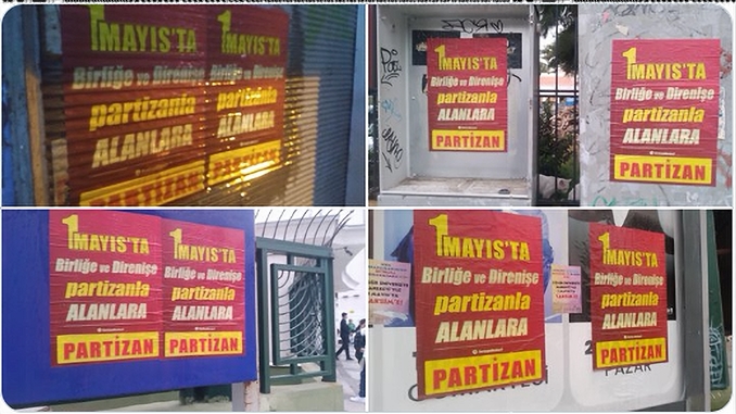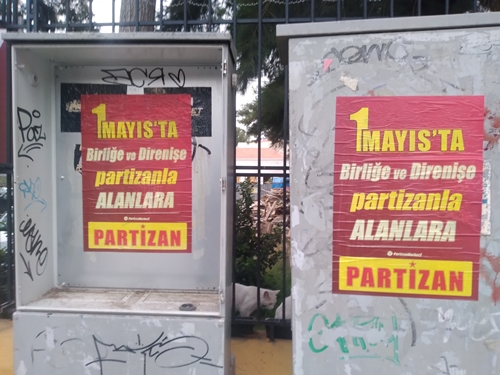İzmir Partizan X Hesabı’ndan yaptığı paylaşımda; “Örgütlü Gücümüzle; Birliğe, Direnişe 1 Mayıs’ta Partizan’la alanlara diyerek konak-alsancak’ta afiş çalışması yaptık” ifadelerini kullandı ve İzmir Konak-Alsancak’da otobüs duraklarına ve duvarlara; Partizan imzalı “1 Mayıs’ta Birliğe ve Direnişe Partizanla Alanlara” afişleri yapıldığını açıkladı.