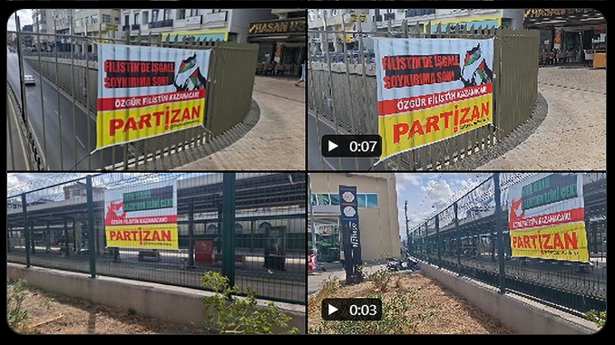Partizan, Gülsuyu’nda astığı pankartlar için  X Hesabından yaptığı paylaşımda;  “Sumud Filosundan yüzlerce aktivist gözaltına alındı. İsrail Gazze’ye insani yardımı engelleyerek halkı açlığa mahkum etmek istiyor. Abluka halkların dayanışmasıyla kırılacak. AKM’den Dolmabahçe’ye Yürüyoruz!