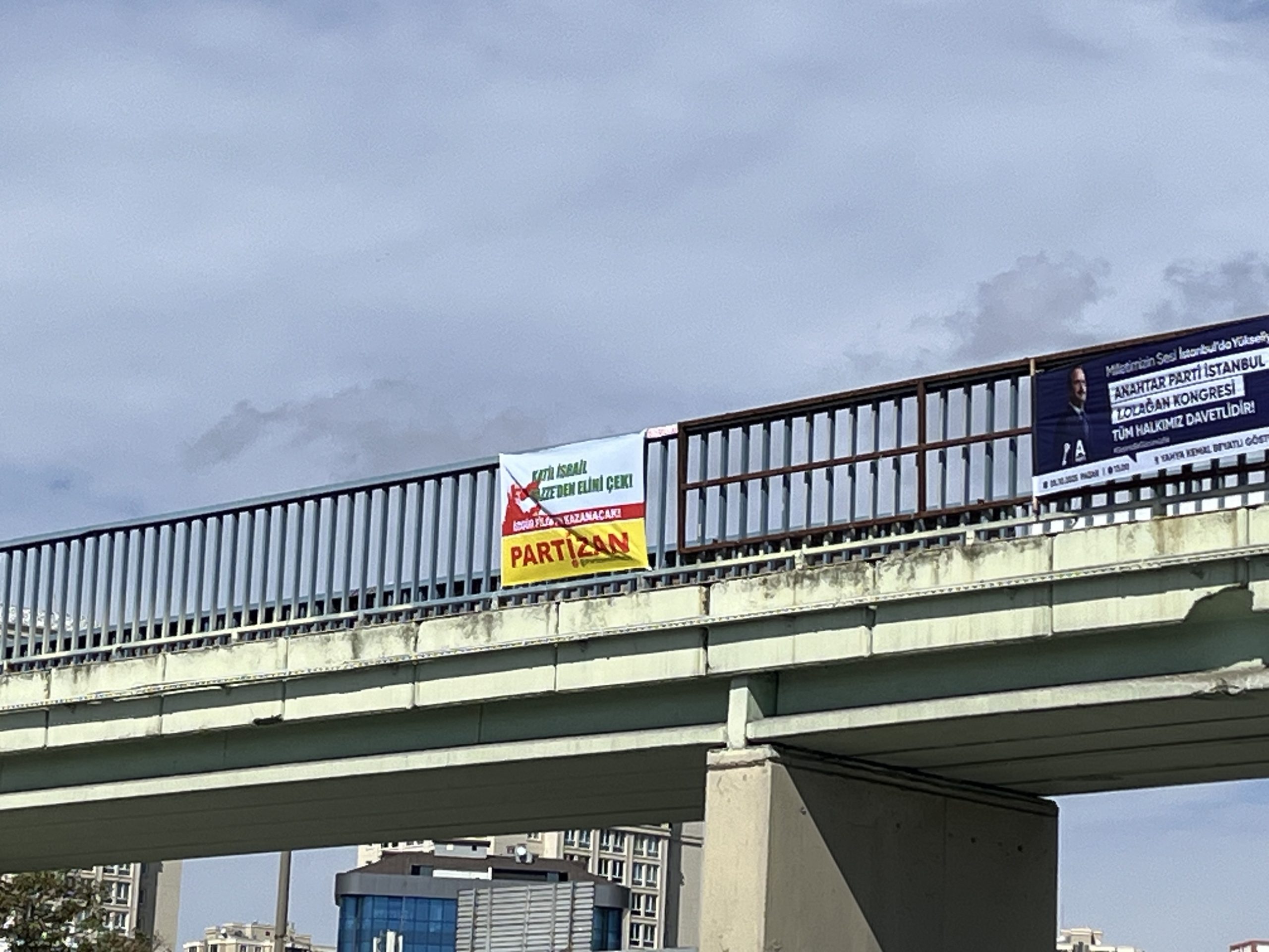 Partizan, İstanbul Kartal’da astığı pankartlar için X Hesabı’ndan yaptığı paylaşımda; “Filistin’in yanında durmak her türlü askeri ilişkinin kesilmesiyle olur. Gerçek dayanışma, halkların dünyanın dört bir yanında sokağa taşan öfke ve direnişidir! Özgür Filistin kazanacak! AKM’den Dolmabahçe’ye Yürüyoruz 5 Ekim Pazar Saat: 15.00” ifadelerini kullandı.