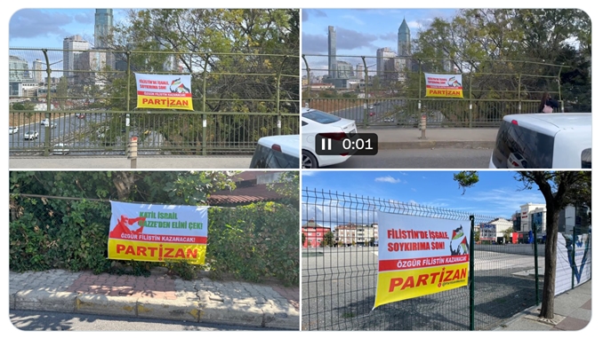 Partizan, İstanbul’da 1 Mayıs, Gülsuyu, Kartal ve Sarıgazi’de pankartlar astığını duyurdu ve 5 Ekim’de Filistin’e destek için yapılacak eyleme çağırdı.