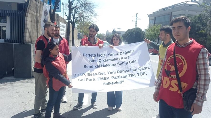 BDSP, Esas-Der, Yeni Dünya için Çağrı, SOL Parti, EMEP, Partizan, TİP, TÖP, Halkevleri tarafından Esenyurt’ta Perfetti fabrikasında sendikalı olduğu için işten atılan işçinin direnişi ziyaret edildi ve dayanışma mesajı verildi.