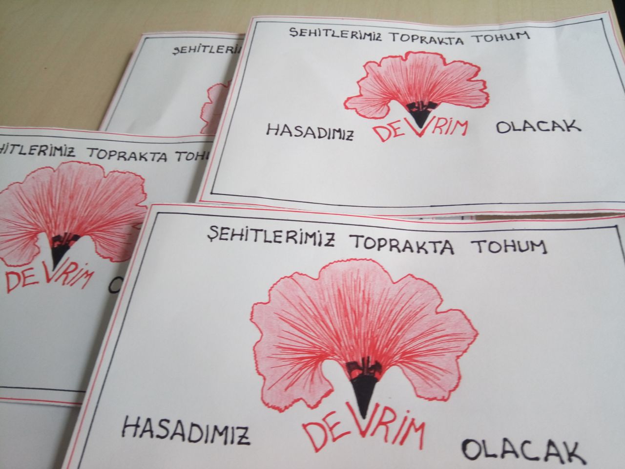 Kandıra 1 No’lu F Tipi Hapishane’de tutulan Tutsak Partizan Resmiye Vatansever, Proletarya Partisi tarafından ilan edilen parti ve devrim şehitlerini anma haftası olan Ocak ayının son haftası vesilesiyle kart hazırladı.
