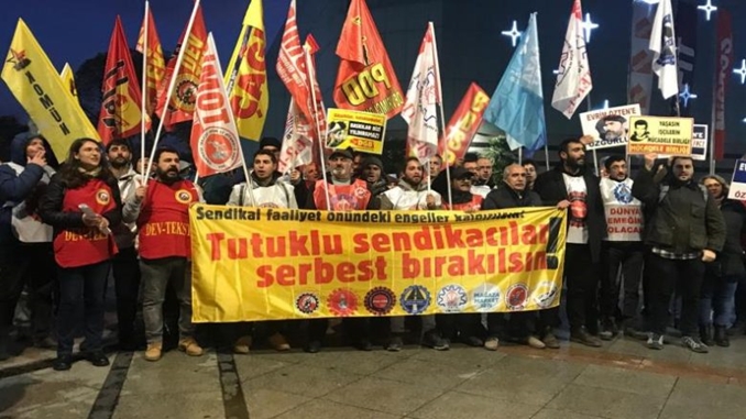 İşçi sendikaları “Sendikal faaliyetin önündeki engeller kaldırılsın! Tutuklu sendikacılar serbest bırakılsın!” şiarıyla İstanbul’da Şişli Cevahir AVM önünde eylem gerçekleştirdi.