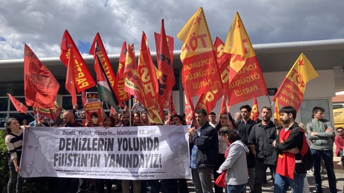 “52 yıl önce kurulan dar ağaçlarında, Denizler şahsında yok etmek istedikleri işçilerin, emekçilerin, gençlerin, ezilen halkların gelişen mücadelesiydi. Bu düzenin efendileri devrimci önderleri yok ederek sömürü, soygun ve zorbalık üzerine kurulu kapitalist düzenlerini sorunsuzca devam ettirebileceklerini düşündüler. Emperyalist barbarlığın kirli ve kanlı çıkarları için bir bütün olarak topluma gözdağı vermek istediler. Ama başaramadılar! İdamlarla, katliamlarla engellemek istenen devrim mücadelesi dalga dalga yayılmaya devam etti, kuşaktan kuşağa geçti. Kızıldere’de Mahirlerin, işkencehanelerde İbrahimlerin, darağaçlarında Denizlerin kararlılığı, inançları, cesaretleri hafızalardan silinemedi. Bu topraklarda devrim fikri ve mücadelesi boğulamadı” ifadelerinin yer aldığı açıklamada, bugün Filistin’de süren soykırım saldırılarına değinildi.