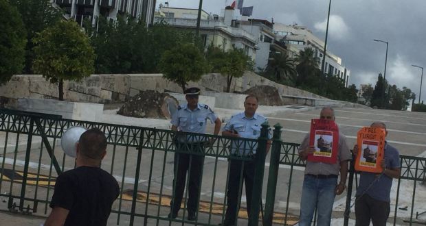 Atina: Turgut Kaya’ya özgürlük şiarıyla eylemlerine devam eden Partizan okurları dün (27 Haziran) kendilerini Sintagma meydanında bulunan parlamento binası önüne zincirleyerek, Kaya’ya özgürlük istediler. Partizan okurları yaptıkları konuşmada hükümetin verdiği sözleri tutmasını istediği sırada Yunan polisi tarafından etrafları çevrildi.